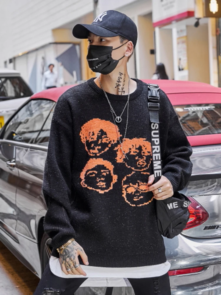 .Gallery for Dark Icon Jacquard Pullover Sweater Men Crew Neck Hip Hop Sweaters Streetwear Cloth Men