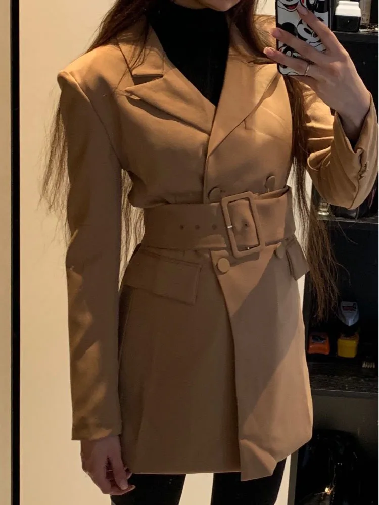 .Gallery of Fashion Za 2019 Women Khaki Casual Spring Autumn Jacket Female Elegant Adjustable Waist With Belt Long Sleeve casaco feminino